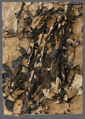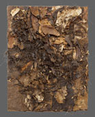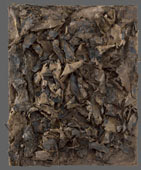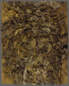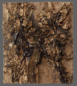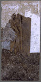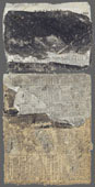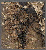 The material used in this work is paper collected from the street, vacant lots, etc. Although they have been cut, torn, and separated to assemble in various ways, the color and surface texture are a result of exposure to the weather.
